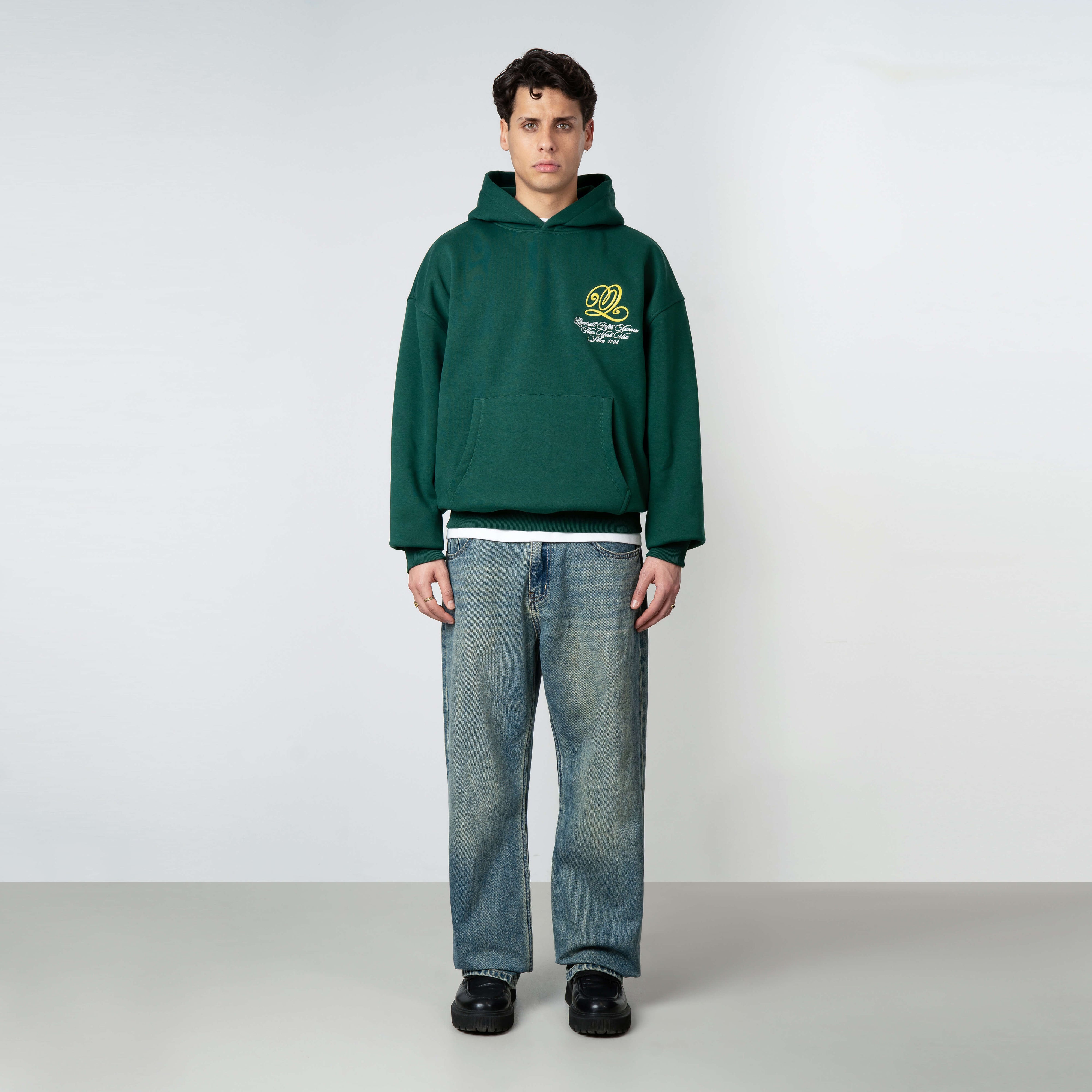 Crafted from premium heavyweight cotton, the hoodie delivers a structured yet relaxed fit that holds its shape and presence. The bold graphic detailing and signature branding bring a sharp edge, while the ribbed cuffs and hem lock in a solid silhouette that feels as powerful as it looks.