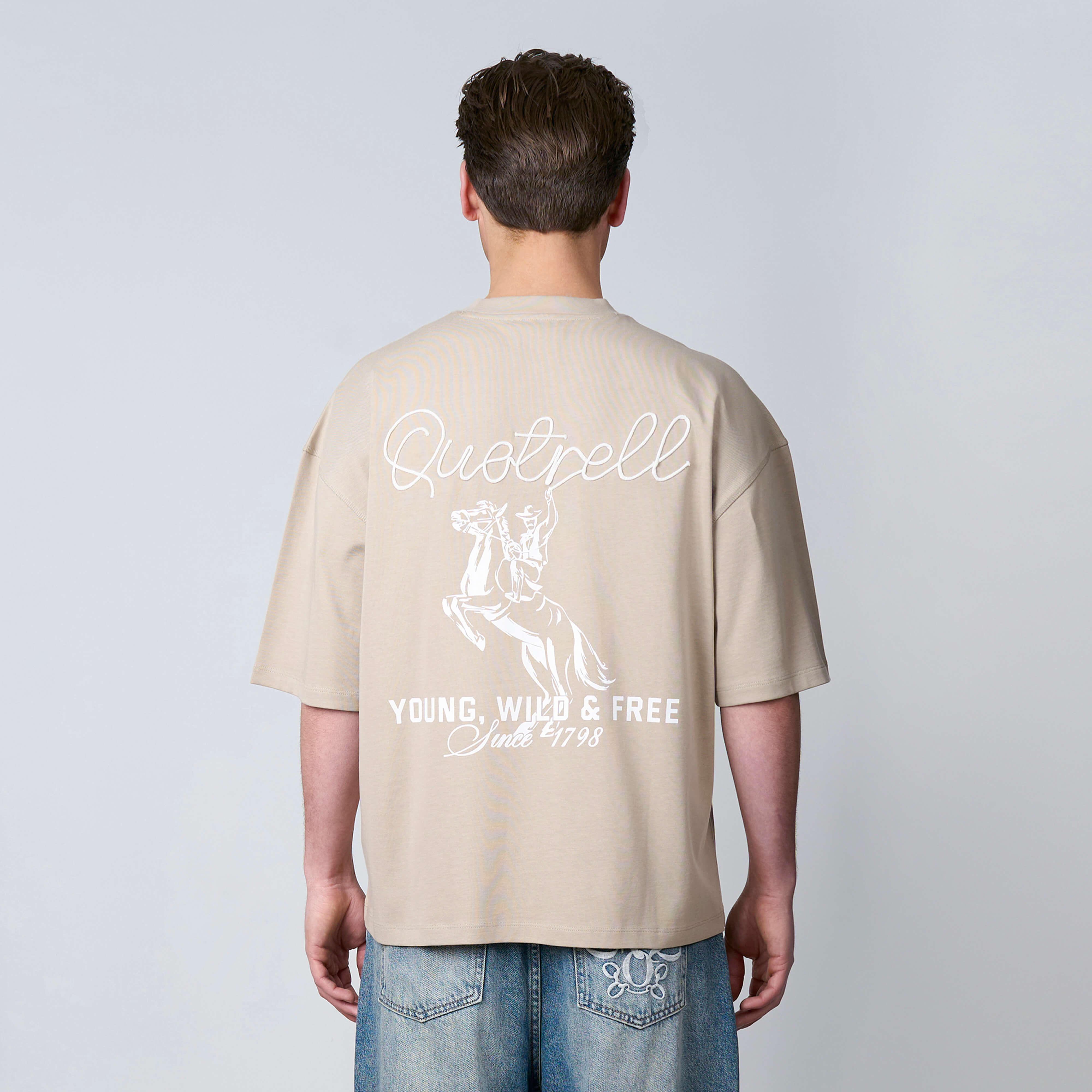 The Lasso Tee features a oversized fit with a soft fabric for everyday comfort. Designed with a clean front and subtle logo branding for a minimal look. The back showcases a bold graphic artwork with signature Quotrell detailing, adding a strong statement to the design. A versatile piece that blends simplicity with standout streetwear style.