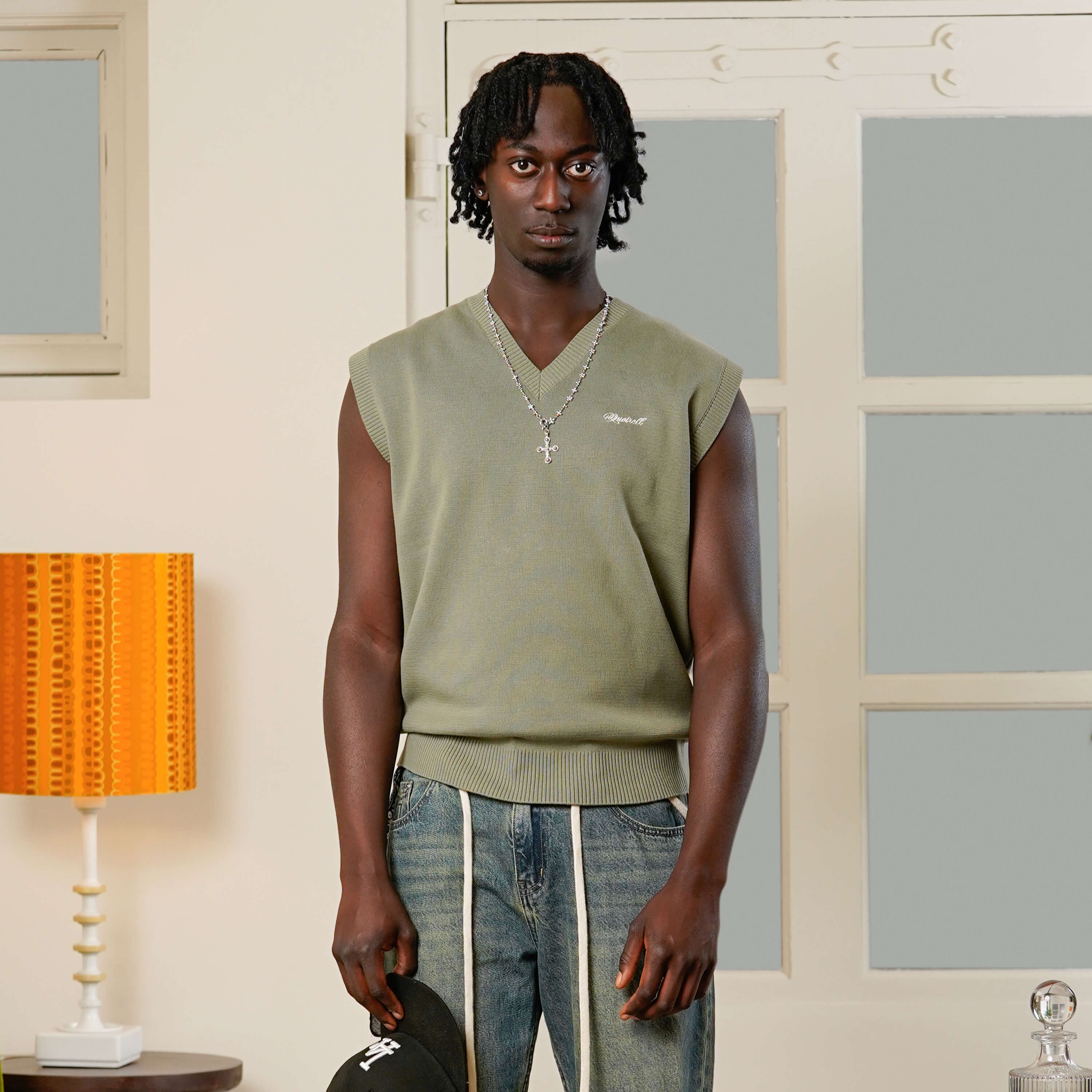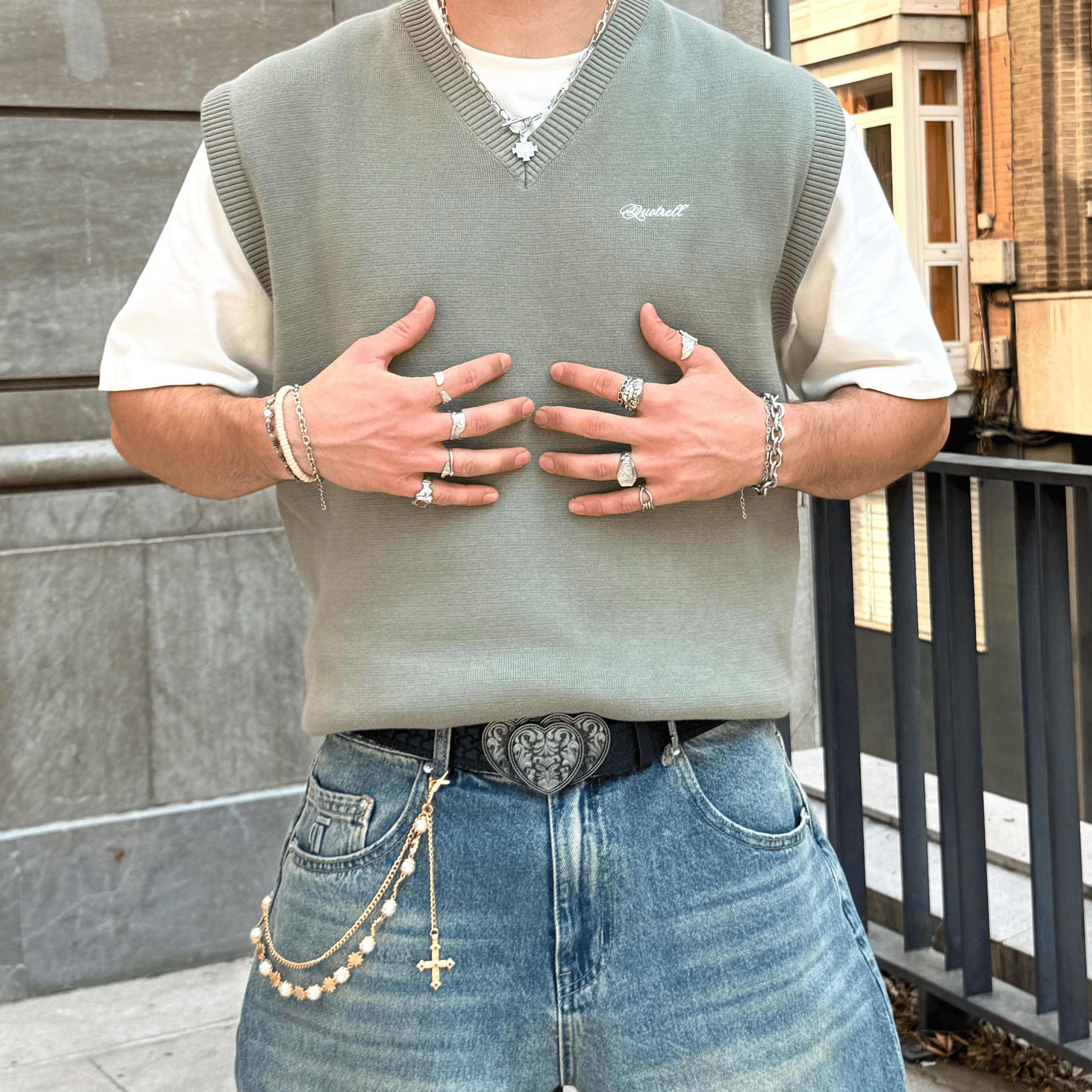 • The Ray Spencer is not your typical men’s sweater vest. Designed with a clean V-neckline, ribbed hem details, and subtle Quotrell logo embroidery, this sleeveless knit fuses retro preppy style with bold streetwear attitude. Whether layered over a shirt or worn solo, it delivers sharp styling with effortless confidence.