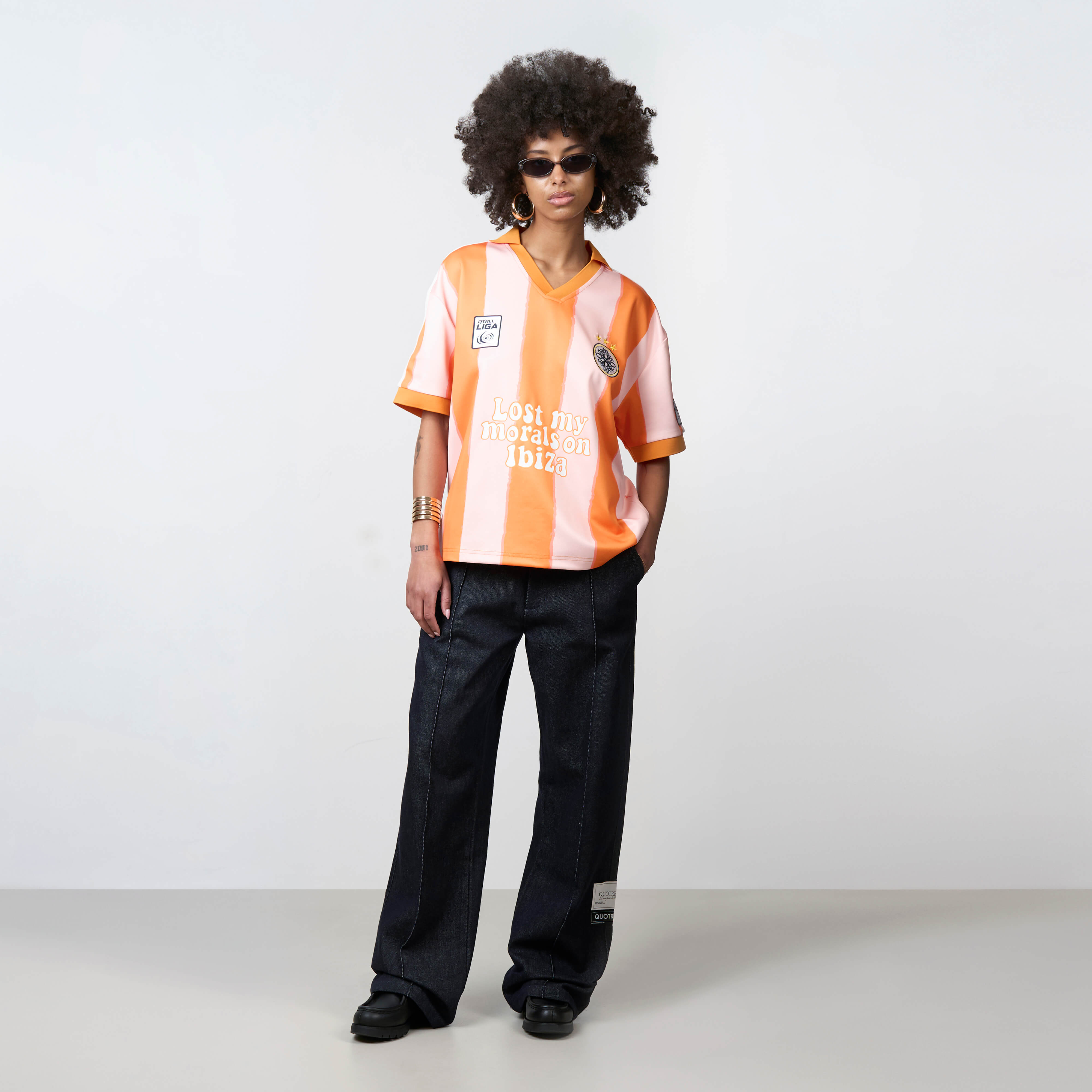 The Ibiza Jersey features an oversized fit with lightweight breathable fabric for comfort and movement. Vertical striping, bold front and back graphics, and signature branding create a strong football-inspired streetwear identity. Designed with a relaxed silhouette for standout everyday wear.